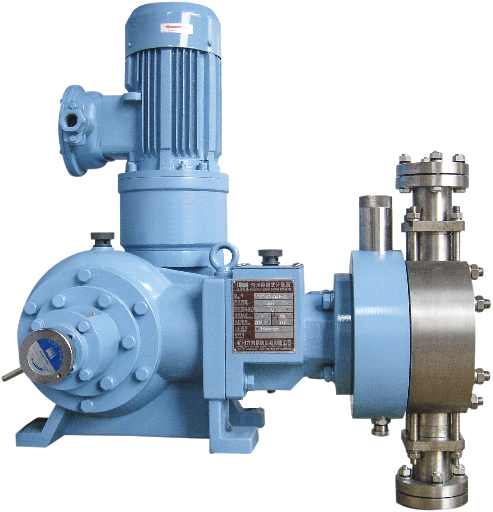液壓隔膜式計(jì)量泵,在輸送介質(zhì)過(guò)程中,具有保證絕對(duì)不漏的特點(diǎn),最適宜輸送易燃、易爆、易揮發(fā)、易沉淀結(jié)晶、放射性、無(wú)自潤(rùn)性、強(qiáng)腐蝕、劇毒以及昂貴的特殊介質(zhì),是石油化工流程中理想的不可缺少的液體物料輸送設(shè)備。